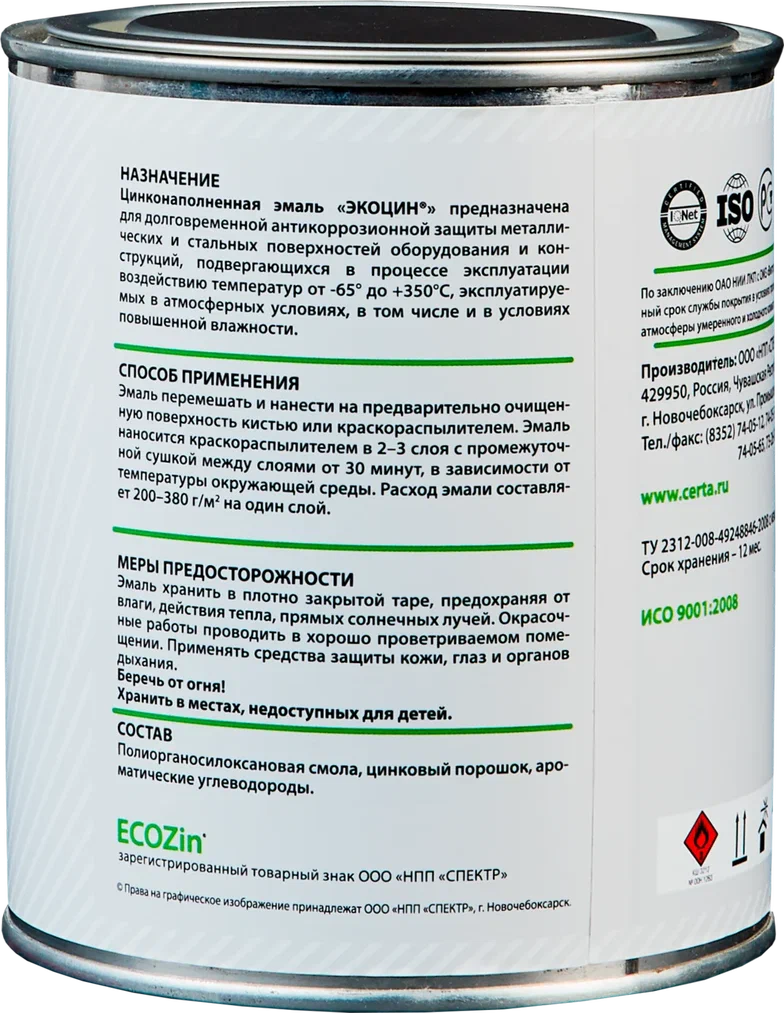 EcoZIN — это сочетание катодного и барьерного механизмов защиты. В мировой практике защиты от коррозии общепризнанно, что именно грунты с содержанием цинка обеспечивают наибольшую долговечность покрытия за счет сочетания двух упомянутых механизмов защитного действия.