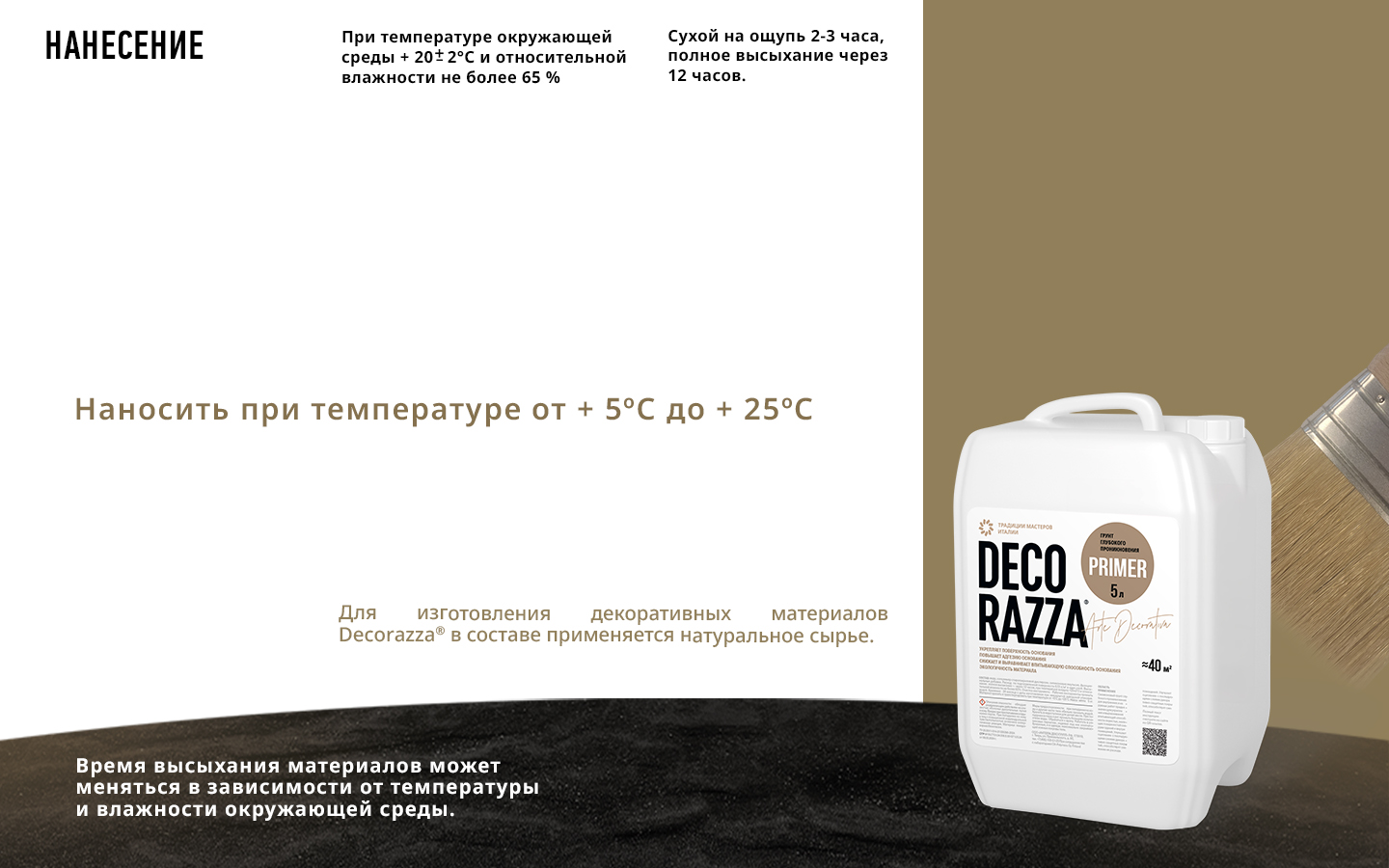 Этот грунт не содержит вредных веществ и абсолютно без запаха, что делает его безопасным для использования в жилых и офисных помещениях. Decorazza PRIMER идеально подходит для подготовки поверхностей перед нанесением красок или декоративных покрытий, обеспечивая их лучшее сцепление и равномерное покрытие. от официального представителя торговой марки Decorazza по г. Йошкар-Ола и Республике Марий Эл.