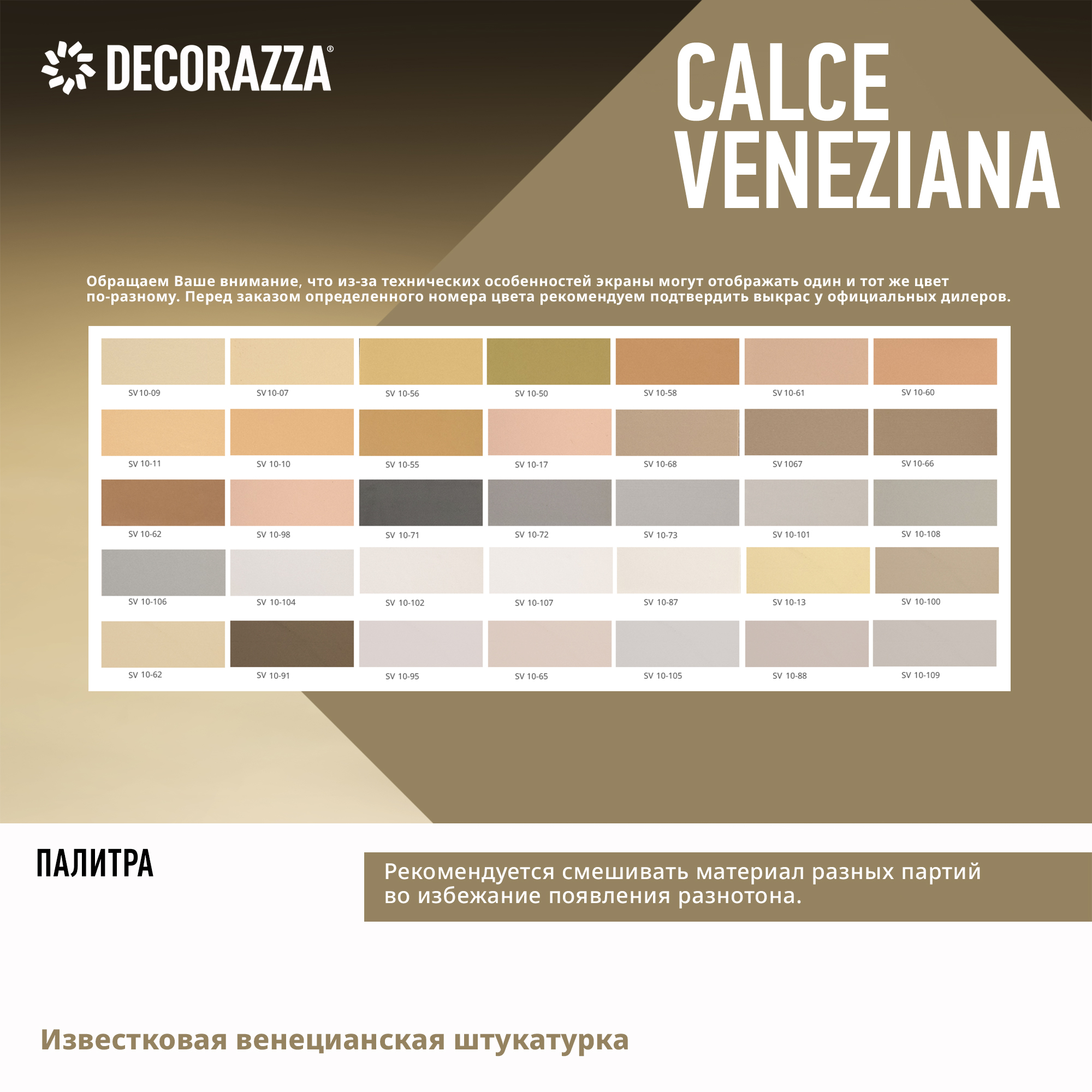 Известковая венецианская штукатурка СalceVeneziano предлагается в цветах: .