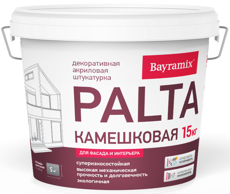 Bayramix Palta (Пальта) наносится в один слой толщиной в полторы-две крошки. По желанию для снижения шероховатости через 20-30 мин. произвести заглаживание поверхности чистым влажным инструментом