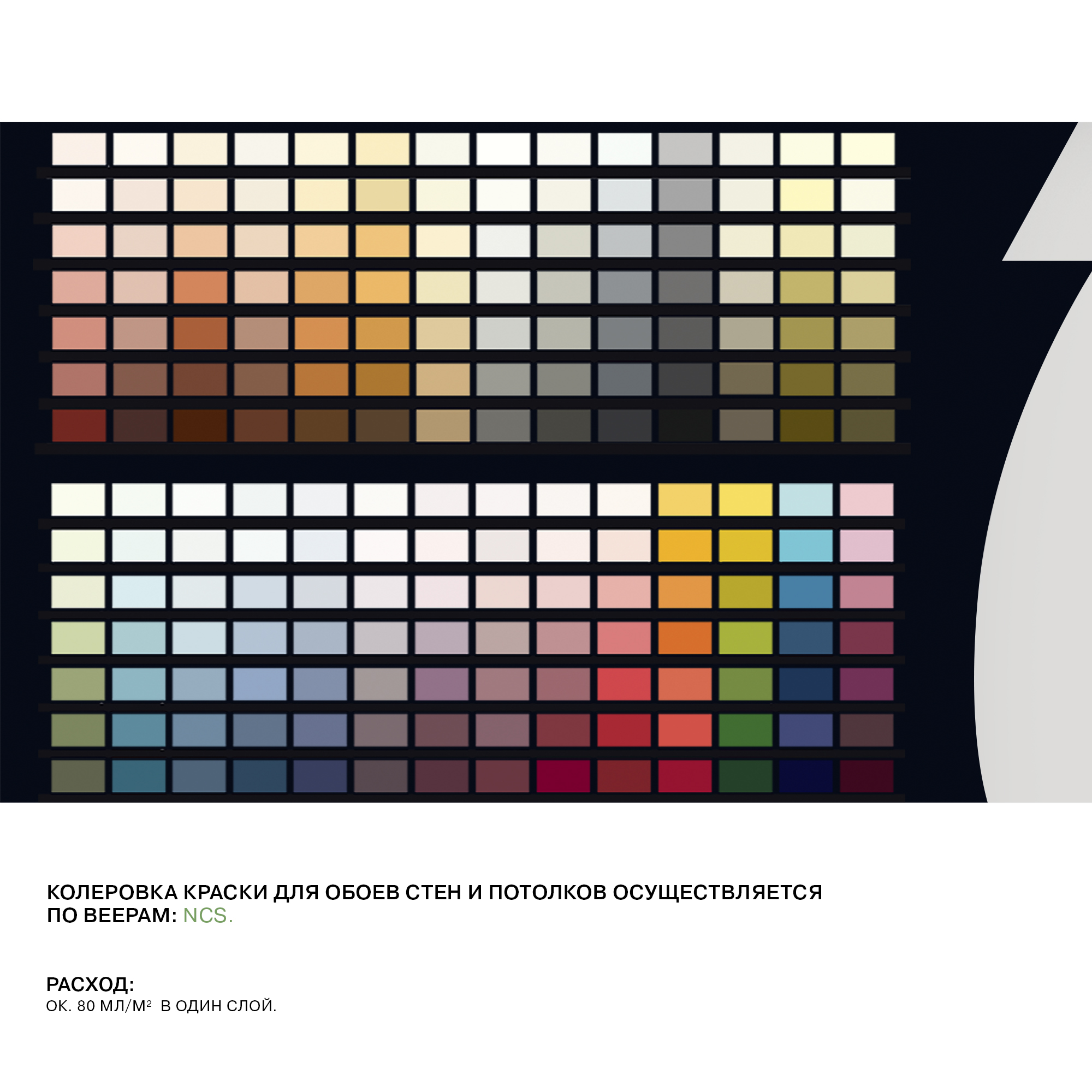 Средний расход составляет: 0,80 м²/л (следует также учитывать технологические потери)