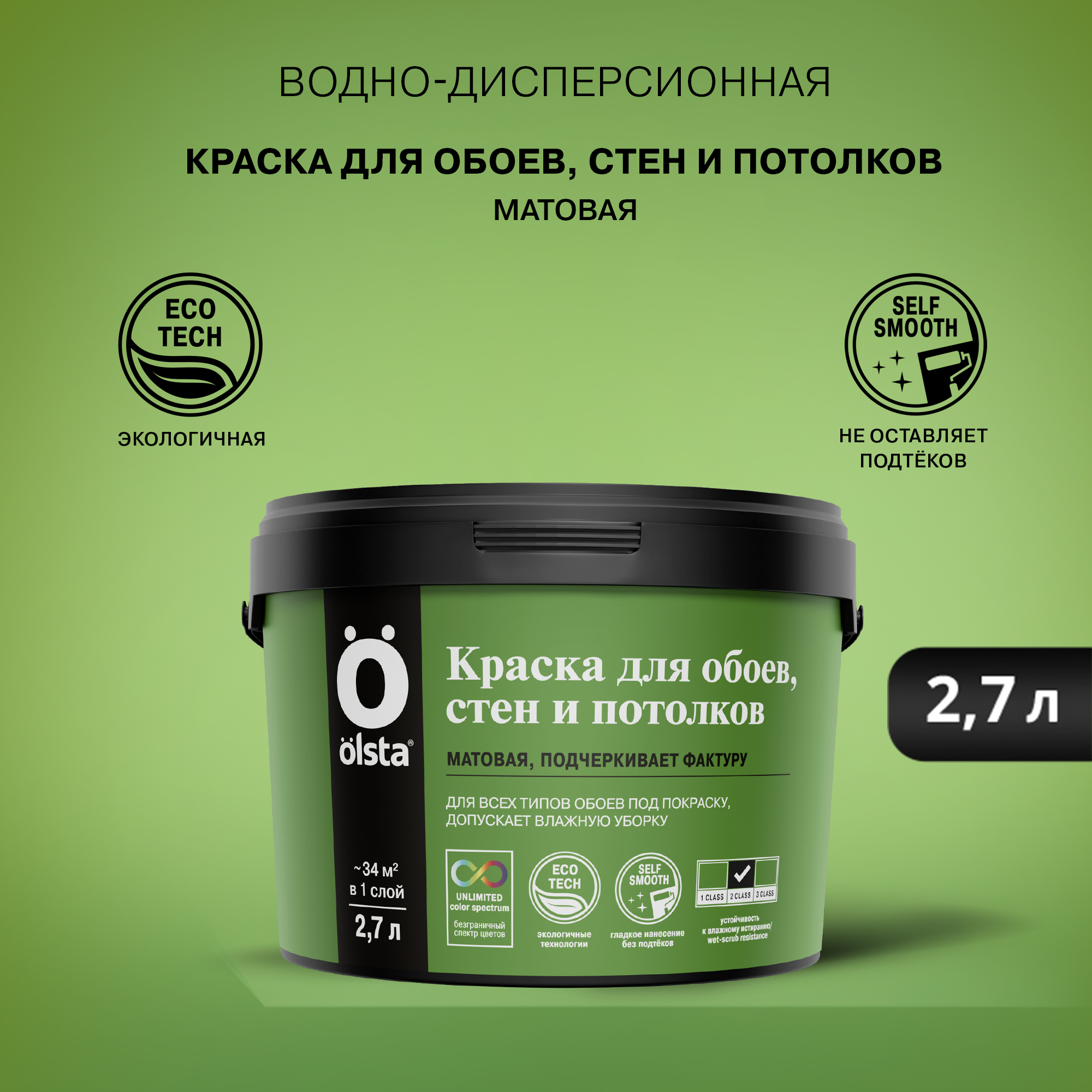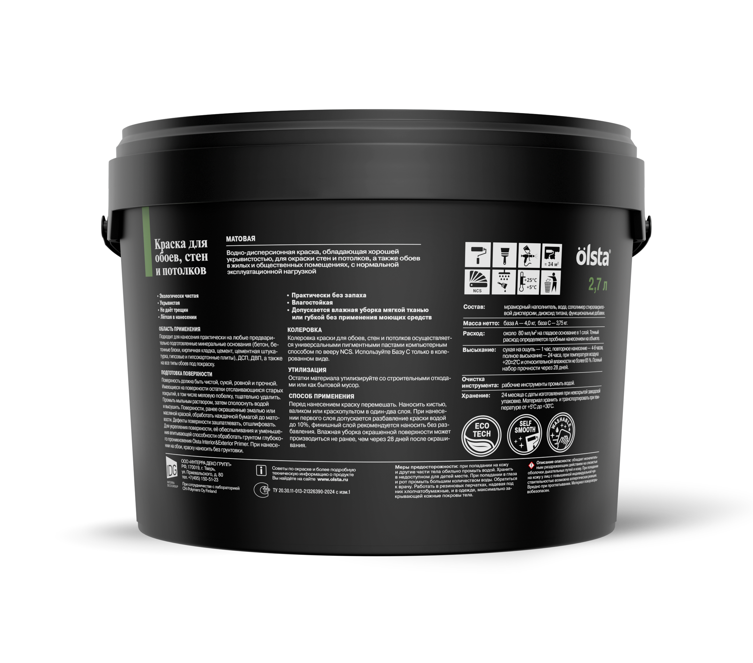 Водно-дисперсионная краска, обладающая хорошей укрывистостью, предназначена для внутренней окраски стен и потолков, а также обоев в жилых и общественных помещениях.