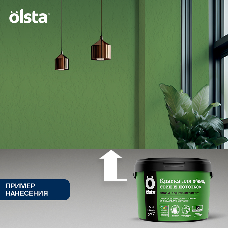 Поверхность должна быть чистой, сухой, ровной и прочной. Имеющиеся на поверхности остатки отслаивающихся старых покрытий, в том числе меловую побелку, тщательно удалить. Промыть мыльным раствором, затем сполоснуть водой и высушить. Поверхности, ранее окрашенные эмалью или масляной краской, обработать наждачной бумагой до матовости. Дефекты поверхности зашпатлевать, отшлифовать. Для укрепления поверхности, её обеспыливания и уменьшения впитывающей способности обработать грунтом глубокого проникновения Olsta Interior&Exterior Primer.