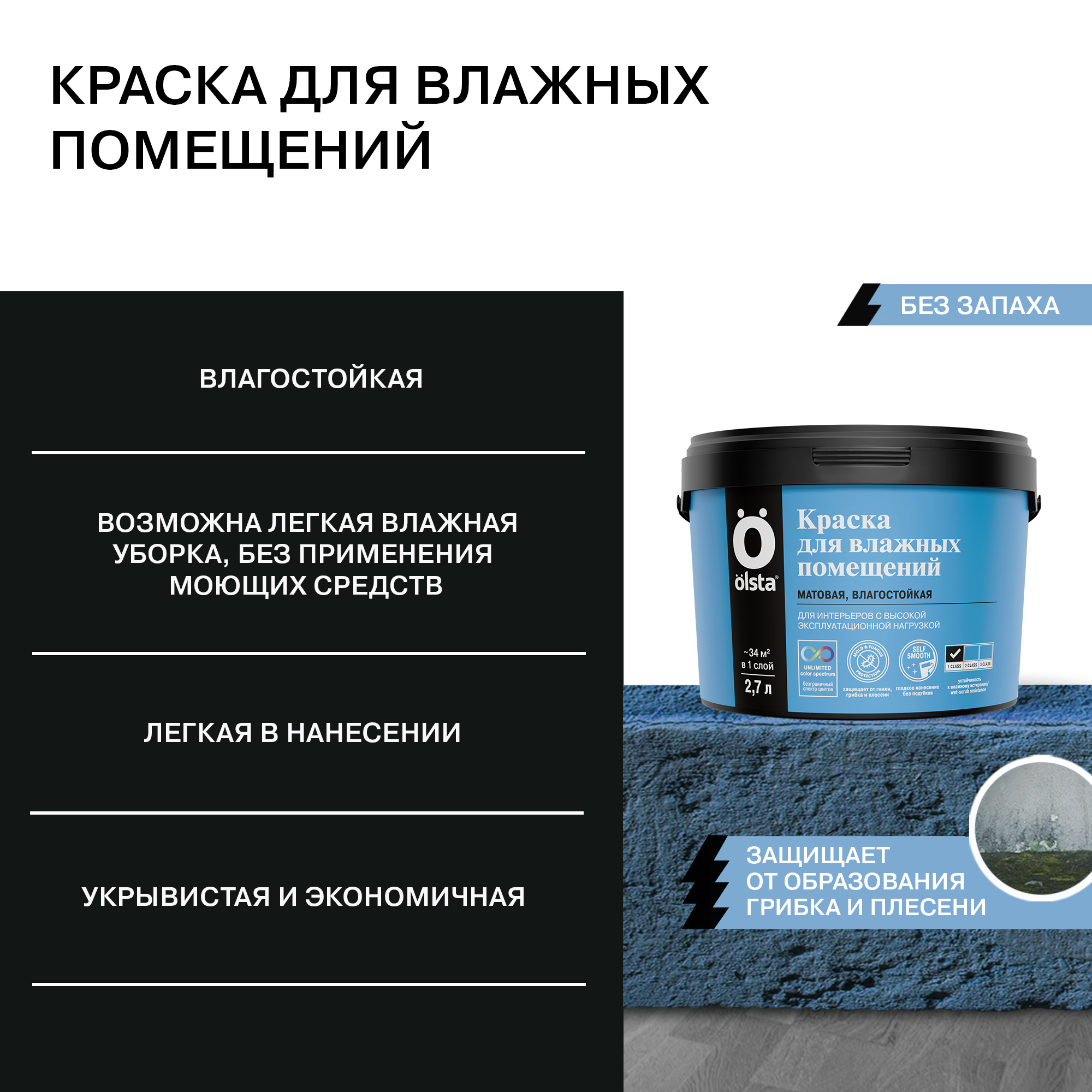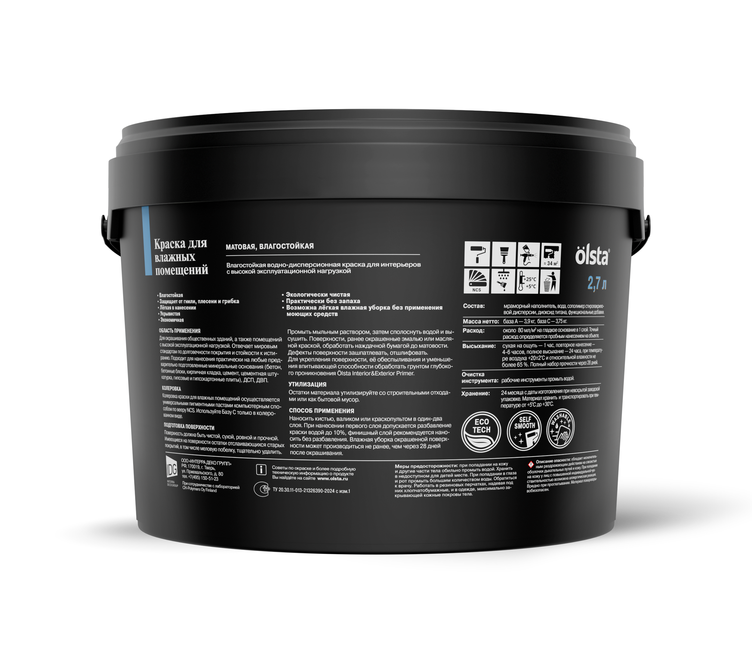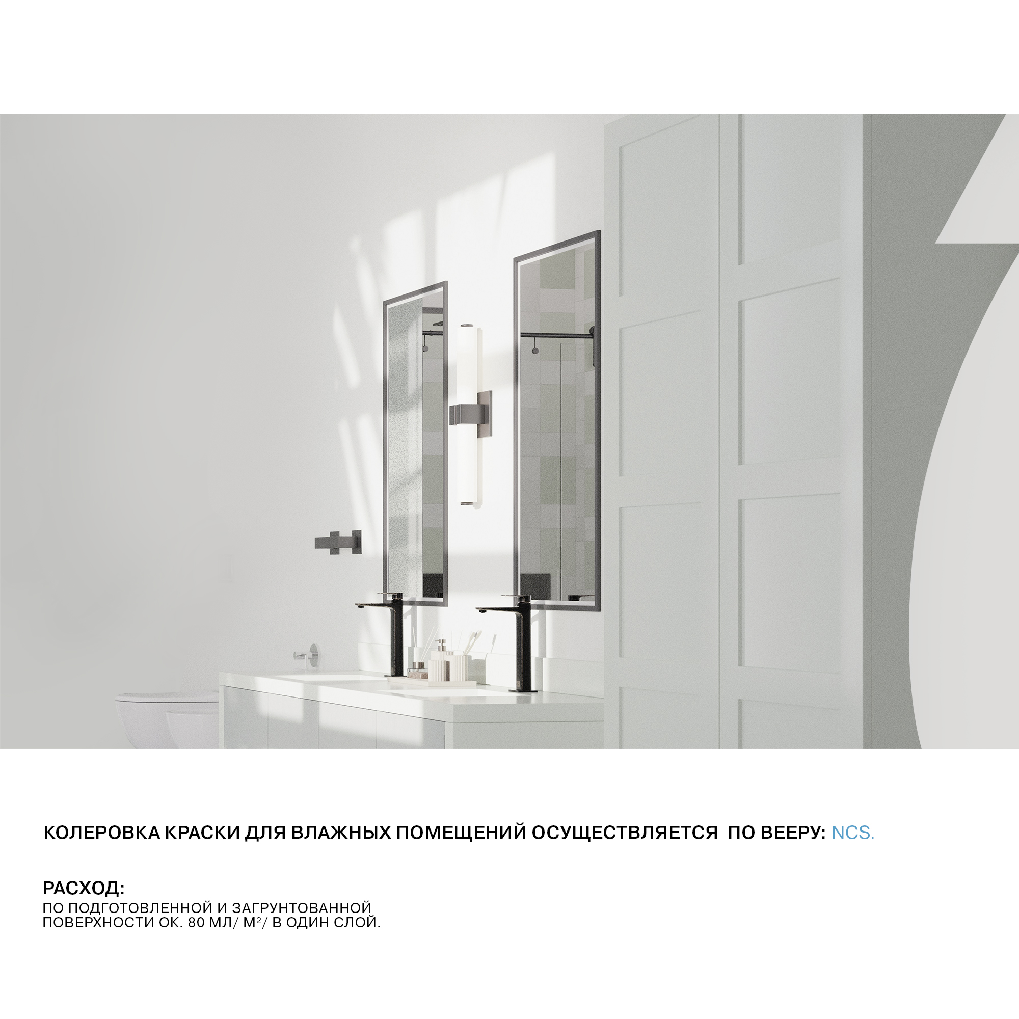Краска для влажных помещений предлагается в цветах: Белый; Основа C - для колеровки в насыщенные тона.