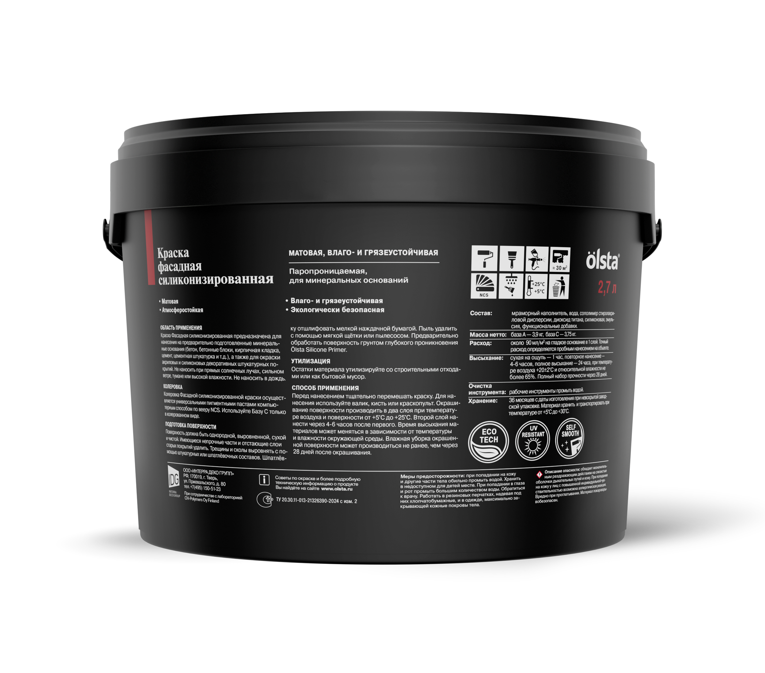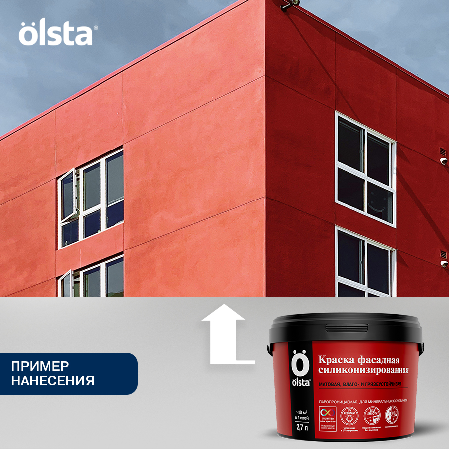 Краска фасадная силиконовая предназначена для нанесения на предварительно подготовленные минеральные основания: бетон, бетонные блоки, кирпичная кладка, цементная штукатурка и т.д. Не наносить при прямых солнечных лучах, сильном ветре, тумане или высокой влажности. Не наносить в дождь.
