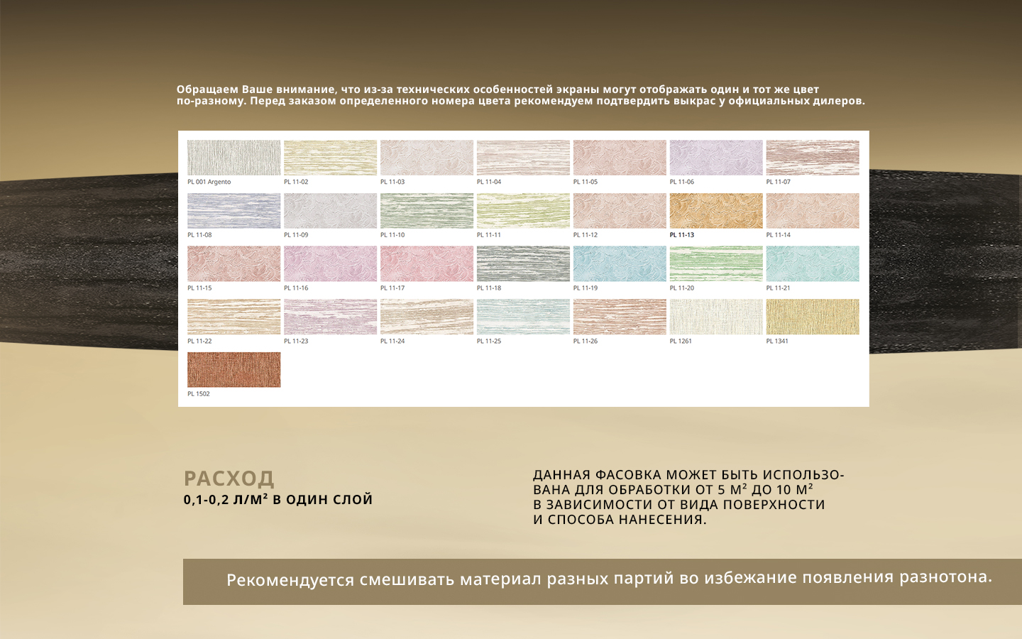Финишный защитный материал Perla Vernici с перламутровым блеском помогает подчеркнуть глубину рисунка, приглушить или усилить яркость цвета основного покрытия. Лессирующий состав поставляется в пяти базах (серебро, бронза, медь, золото и перелив), может колероваться более чем в 20 оттенков.