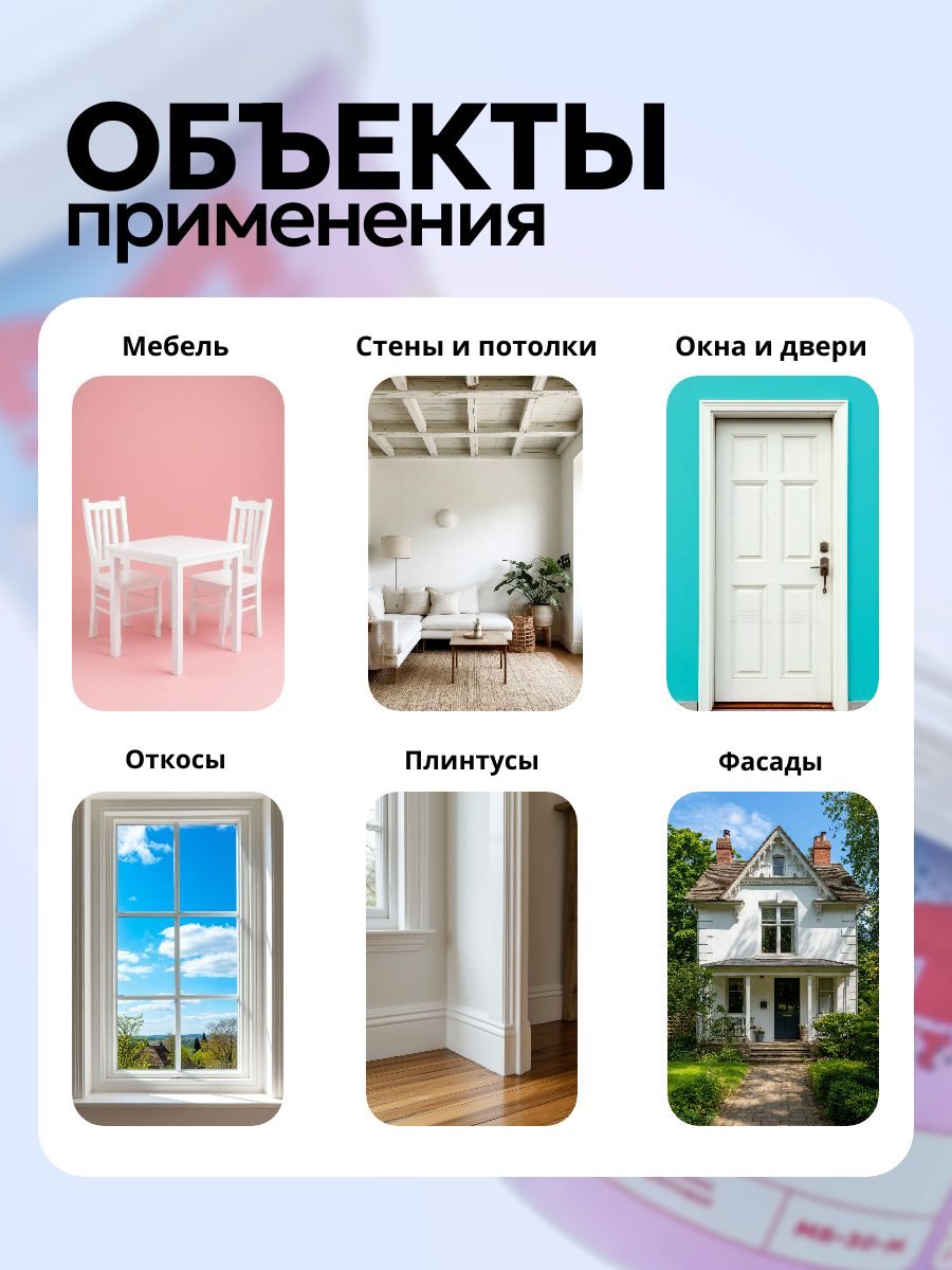 Подходит для наружных и внутренних работ по минеральным, деревянным, металлическим поверхностям
