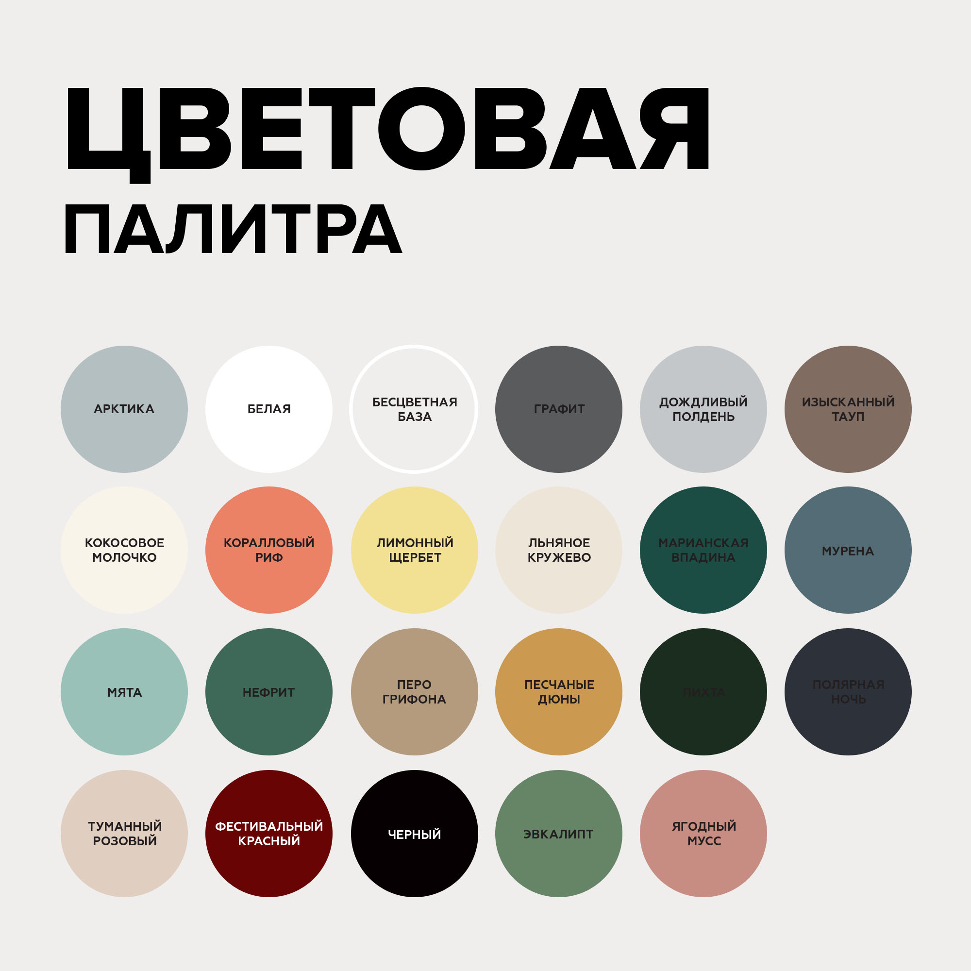 Меловая краска для мебели АМОdecor предлагается в цветах: Арктика; Белый; Графит; Дождливый полдень; Изысканный тауп; Кокосовое молочко; Коралловый риф; Лимонный щербет; Льняное кружево; Марианская впадина; Мурена; Мята; Нефрит; Основа C - для колеровки в насыщенные тона; Перо грифона; Песчаные дюны; Пихта; Полярная ночь; Туманный розовый; Фестивальный красный; Черный; Эвкалипт; Ягодный мусс .