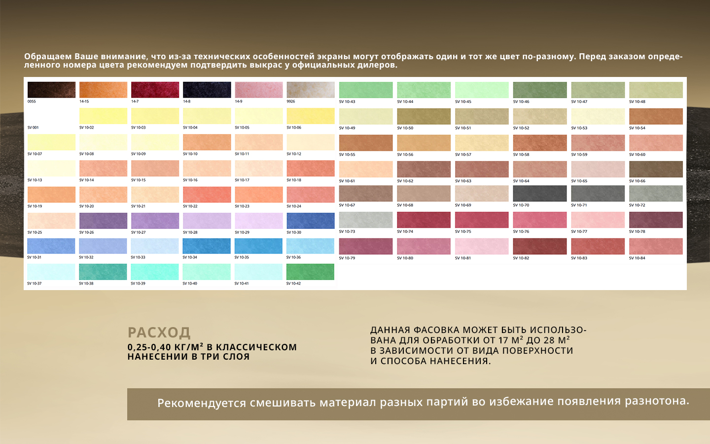 | Расход | 0.3 - 0.5 кг/м² |